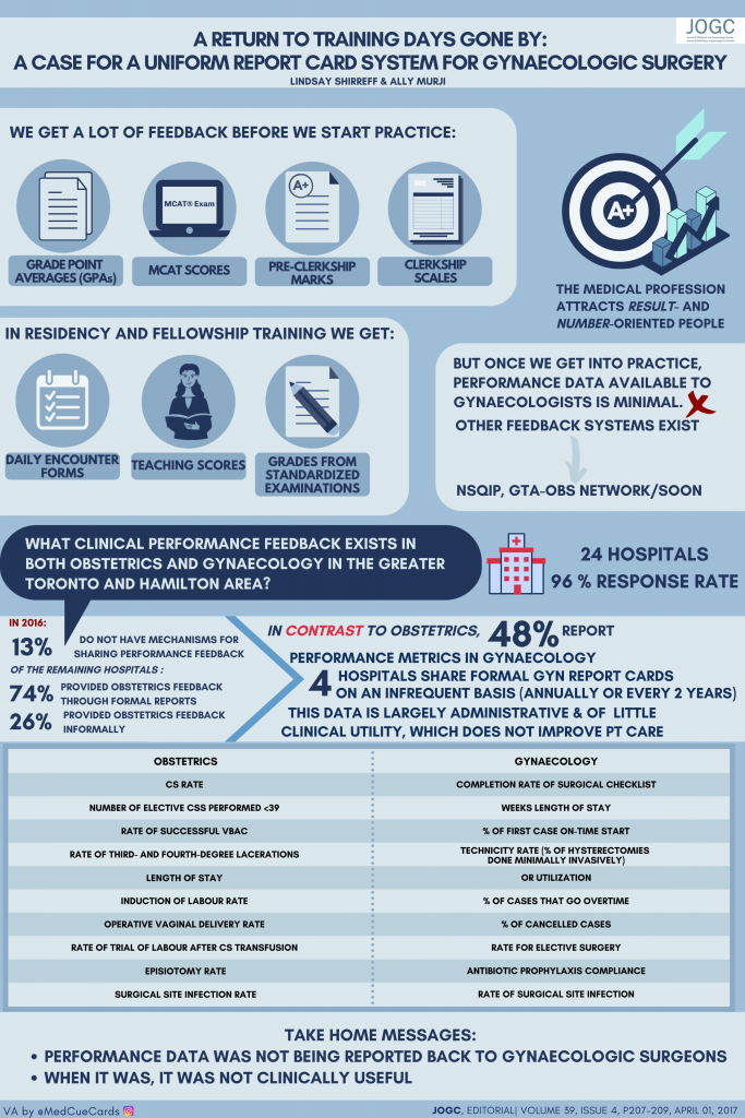 We believed the time had come to create uniform, clinically meaningful feedback for gynaecologic surgeons in Canada. Performance feedback for medical students, resident and fellow trainees is common before starting clinical practice. In an era where quality improvement work is gaining momentum, it is important to continue this culture of feedback for practicing physicians.
