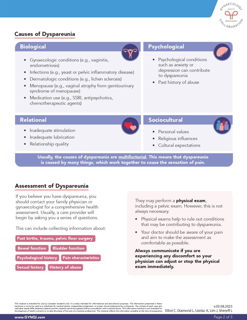 - Dyspareunia can lead to significant emotional stress, social isolation, decreased sexual interest, and relationship issues, with contributing factors ranging from biological (like infections and hormonal changes) to psychological and sociocultural influences.